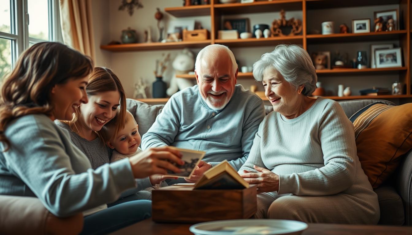 Simple activities like family story nights or casual chats about the past are great. These moments let everyone’s view of the event shine. Technology helps us share photos or videos instantly.