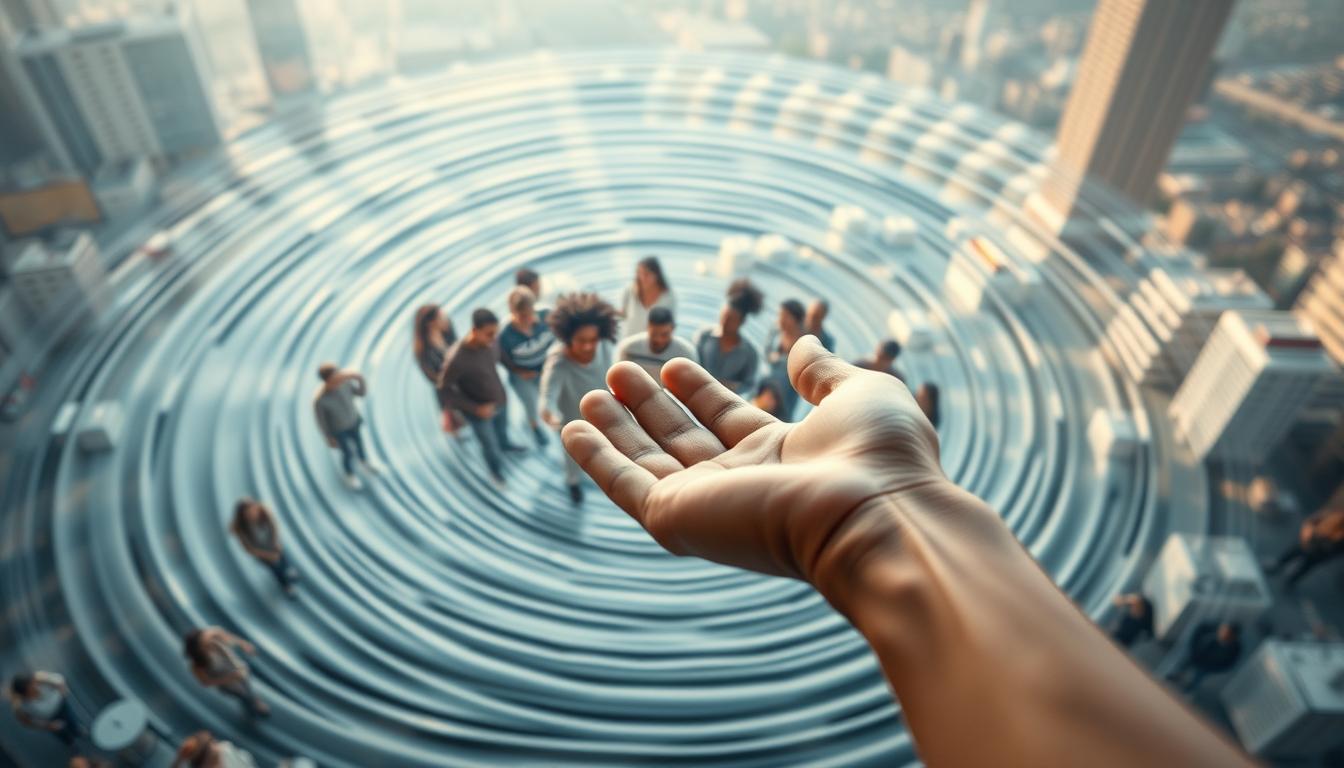 Kindness is more than a nice gesture; it’s a powerful force that spreads far and wide. The kindness ripple effect shows how small acts can bring joy and connection to many. When we help someone, the impact of kindness doesn’t end there. It creates a wave of positivity that touches many lives, turning one good deed into a chain of kindness.